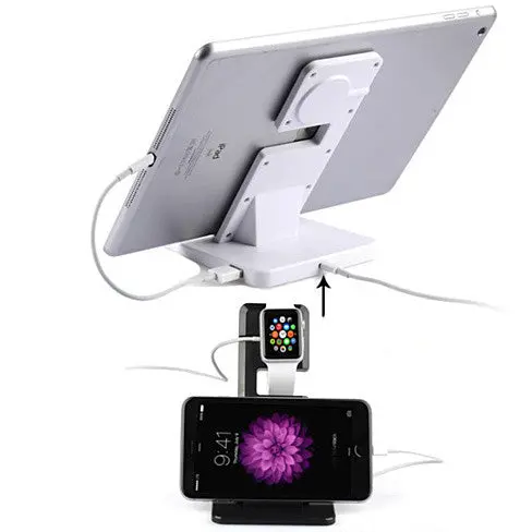 NEW Apple Dual Charging stand that will hold your Apple Gadgets and make it easy to charge. Its unique design allows you to charge your iWatch and also your iPhone 5, 6, 6 Plus model easy and convenient to charge. You can even use the stand as a iPad stand and charge it too.