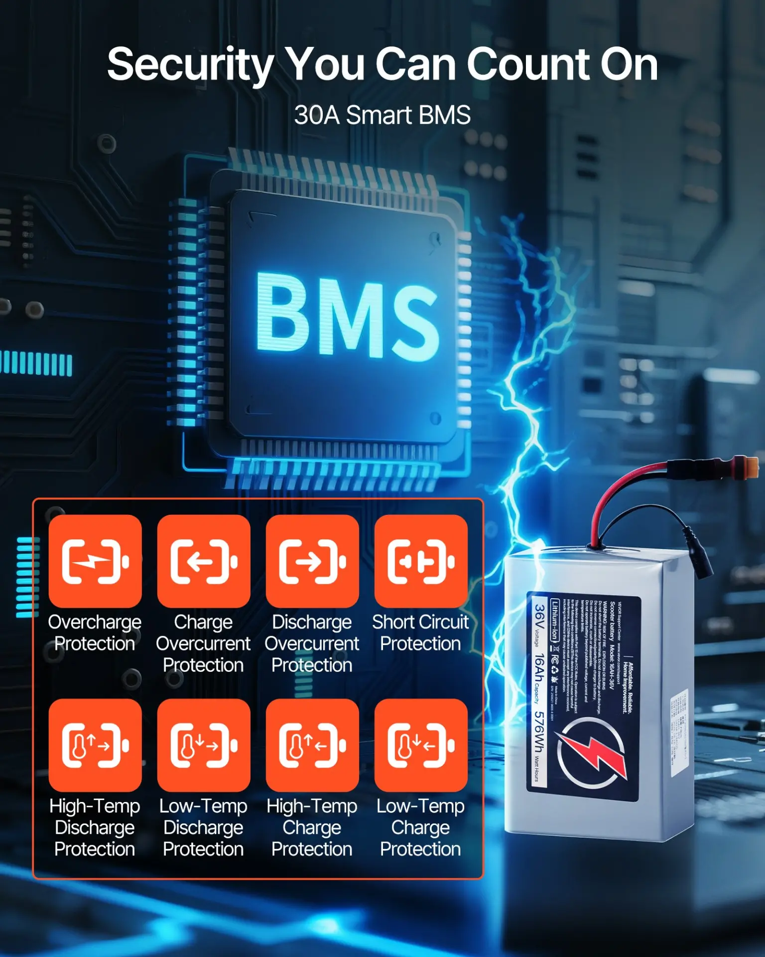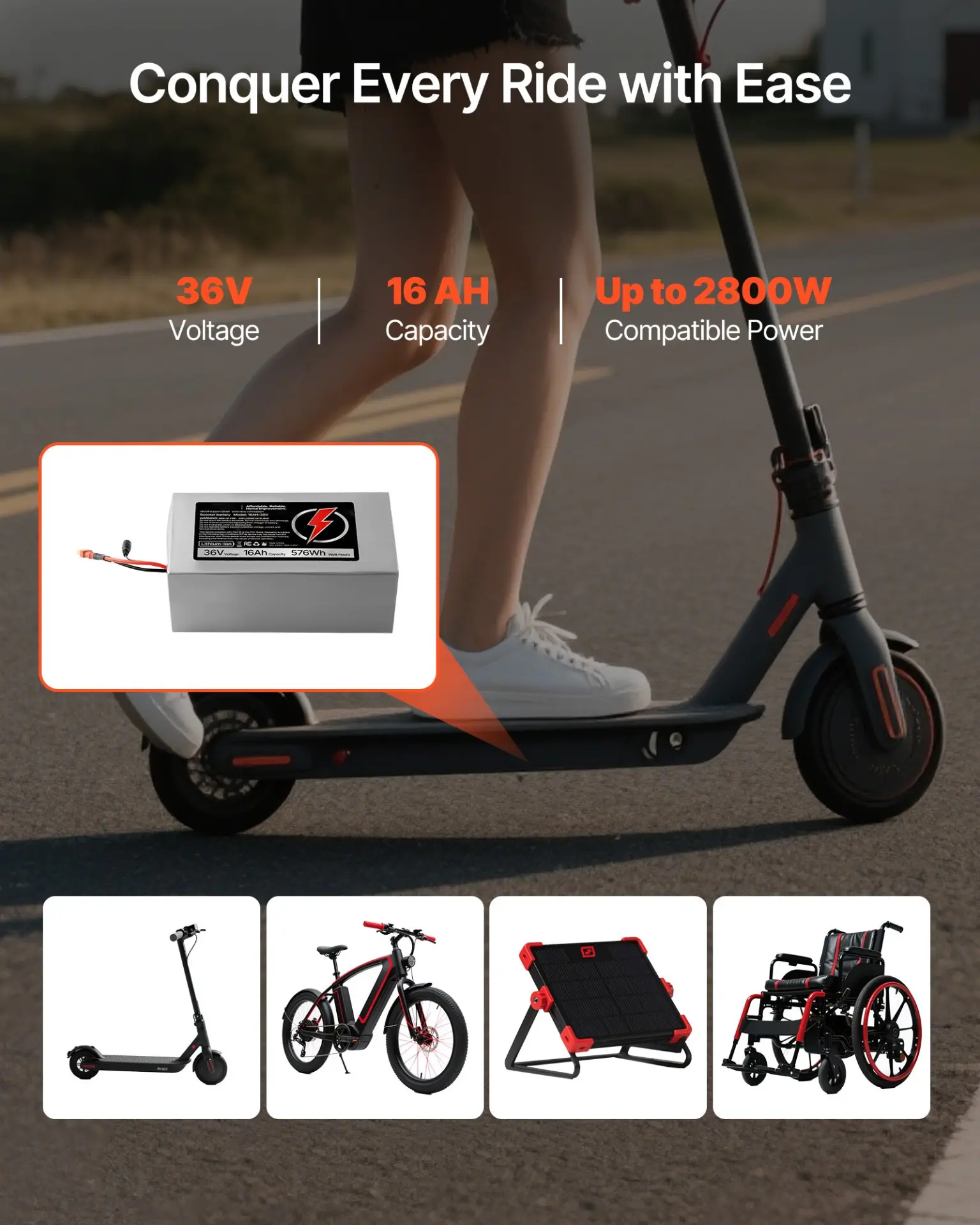 VEVOR 36V Electric Scooter Battery 16Ah Ebike Lithium Battery Pack with 30A BMS