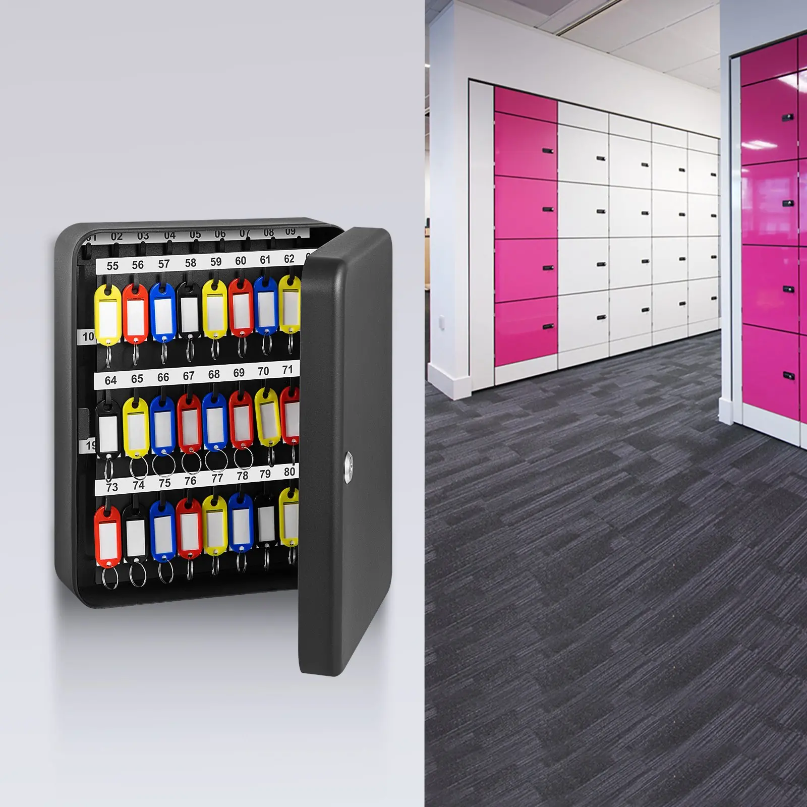 VEVOR Key Cabinet, Key Lock Cabinet Steel, Q235 Steel Key Storage, Wall Mounted Key Storage Box, Black Key Box Organizer for School, Office, Hotel, Bank (120 positions)