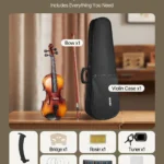 Violin Size: 3/4 (340 mm),Color: Matte Brown,Item Model Number: MV012L,Item Dimensions: 23.62 x 8.27 x 3.35 in / 600 x 210 x 85 mm,Finish: Gloss Varnish,Top Materials: Basswood, Maple,Net Weight: 3.33 lbs / 1.51 kg
